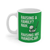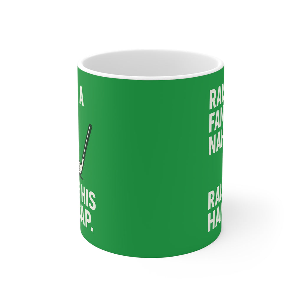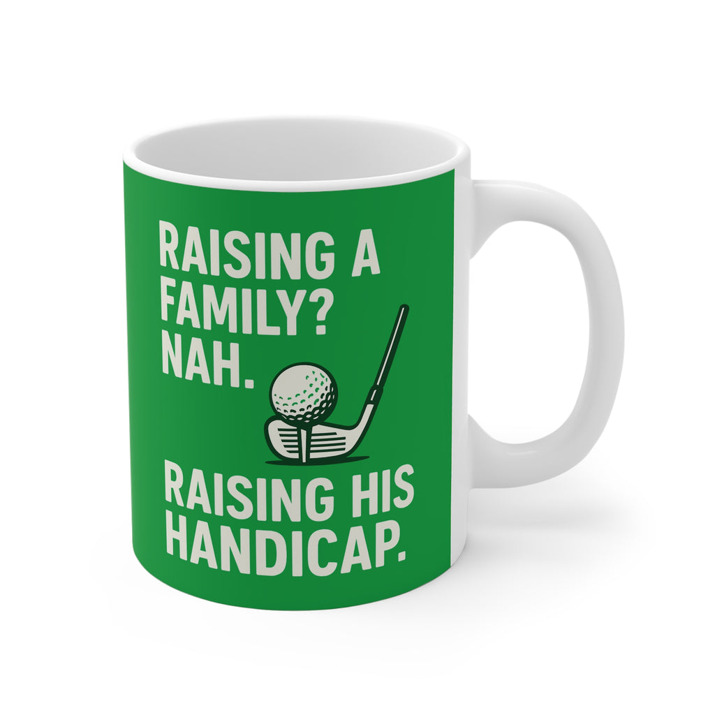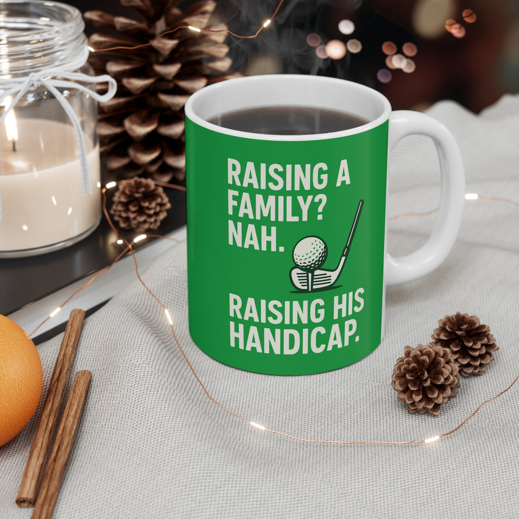 "Raising a Family? Nah. Raising His Handicap." Mug