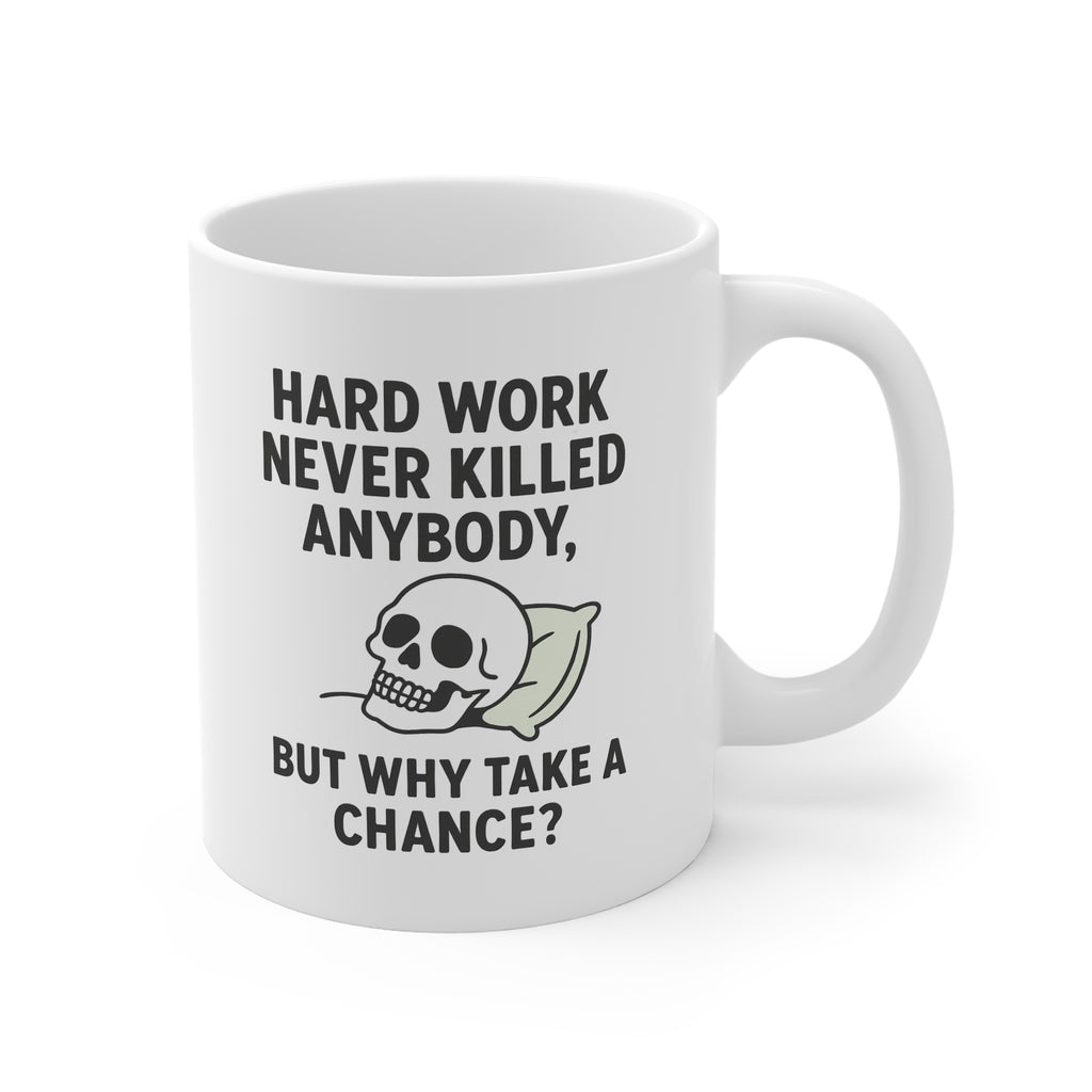The "Hard Work Never Killed Anybody, But Why Take the Chance?" mug is a tribute to those who live by one golden rule: minimum effort, maximum sarcasm. Whether you're mastering the art of delegation, hiding behind your monitor, or just here to survive another meeting — this mug keeps expectations exactly where you want them: low.