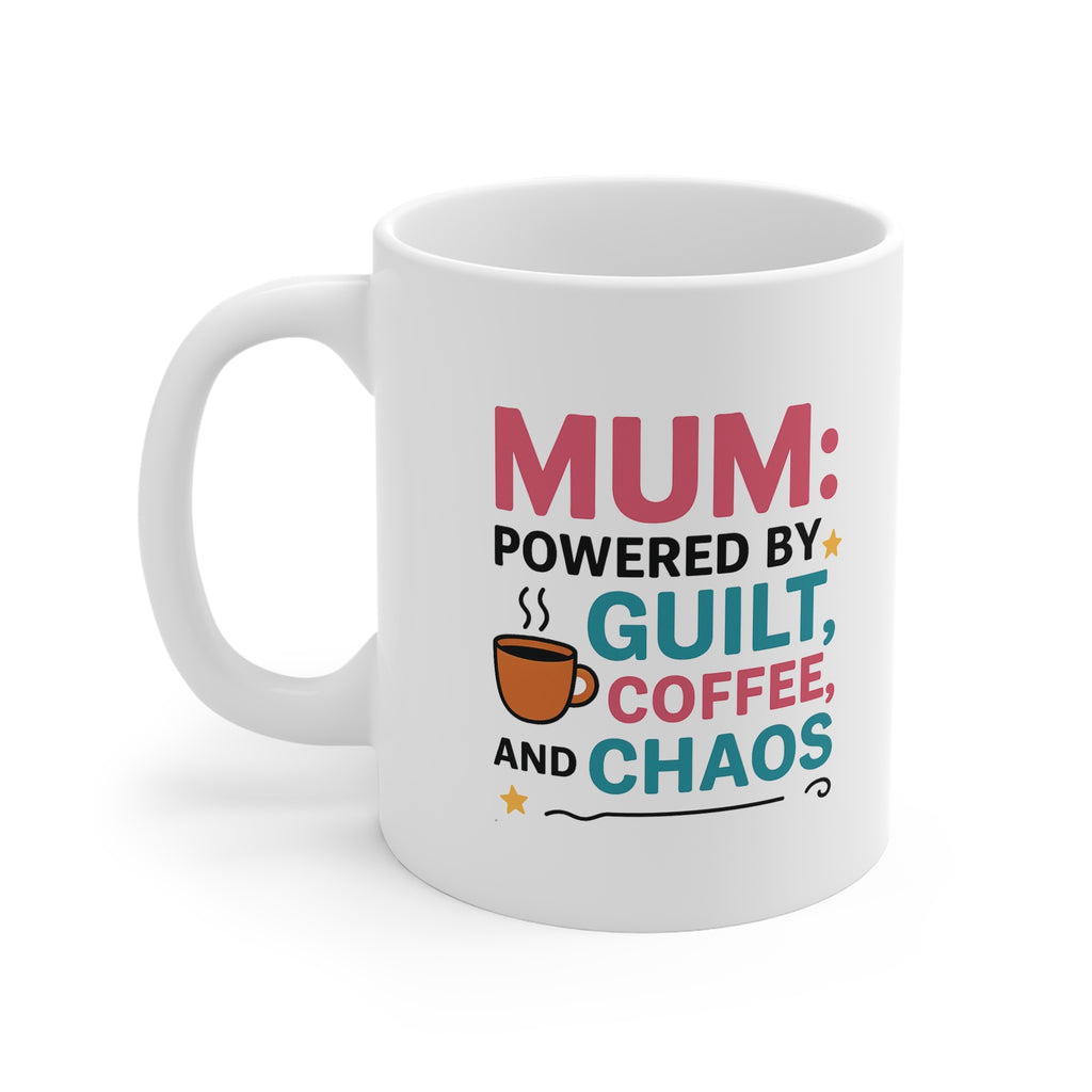 Mum: Powered by Guilt, Coffee, and Chaos Mug