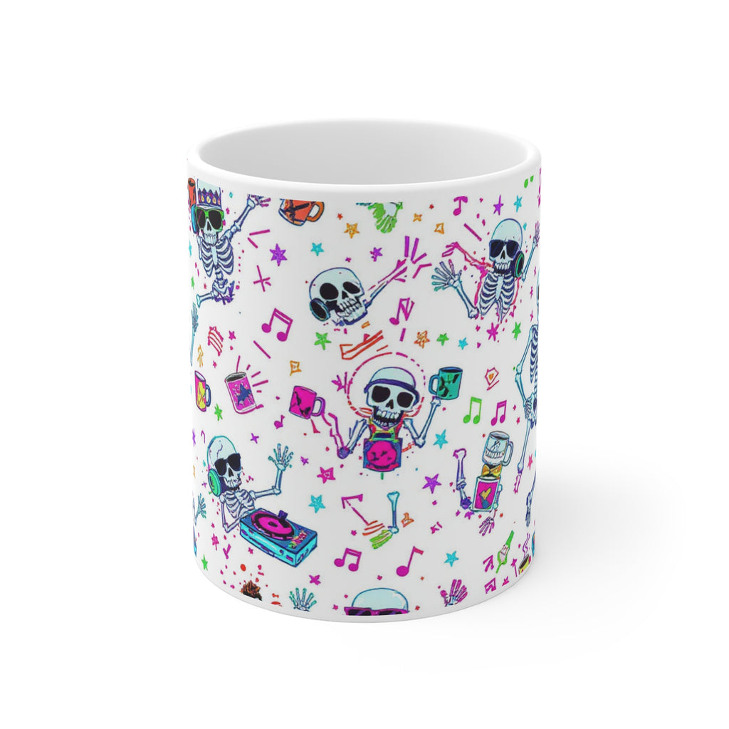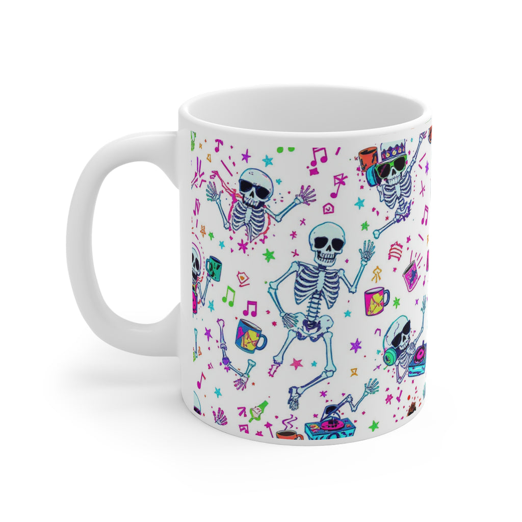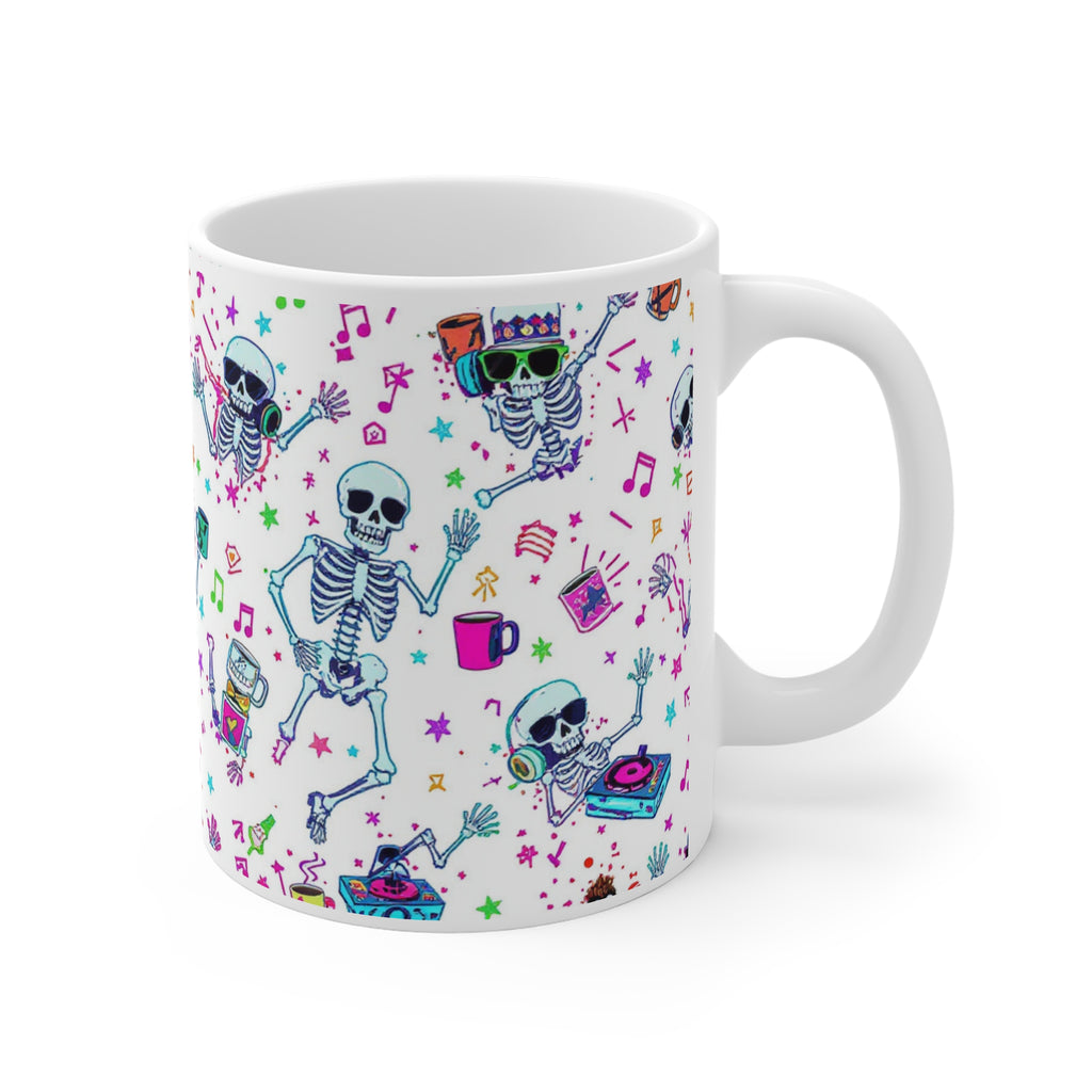 Why rest in peace when you can rave in pieces? This mug is for the skeletons who’d rather throw shapes than lay still. Bursting with neon chaos, caffeine, and bone-rattling bangers, it’s the perfect brew holder for the undead DJ in your life. Whether you're pre-gaming for the grave or sipping through the afterlife — this mug slaps.