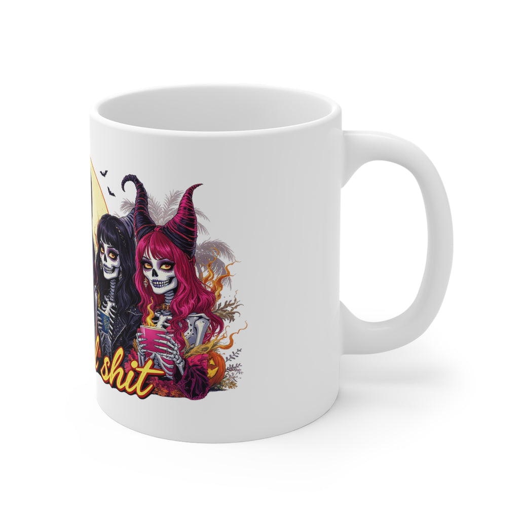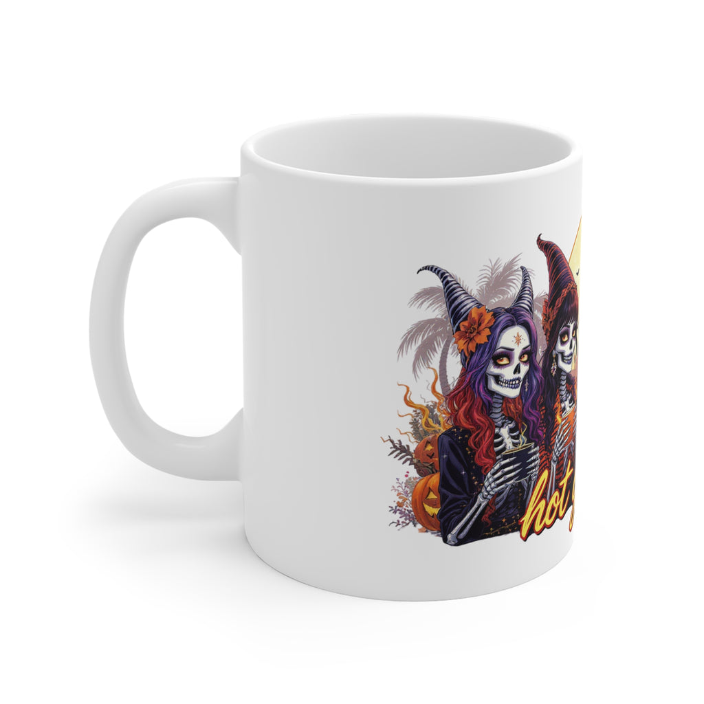 Calling all bad witches — this one’s for the caffeine-fuelled coven. The Hot Ghoul Shit mug brings skeleton sass, witchy glam, and serious “I woke up like this (dead)” energy. Whether you're sipping pumpkin spice or a potion of regret, this mug is your ride-or-die for spooky season.