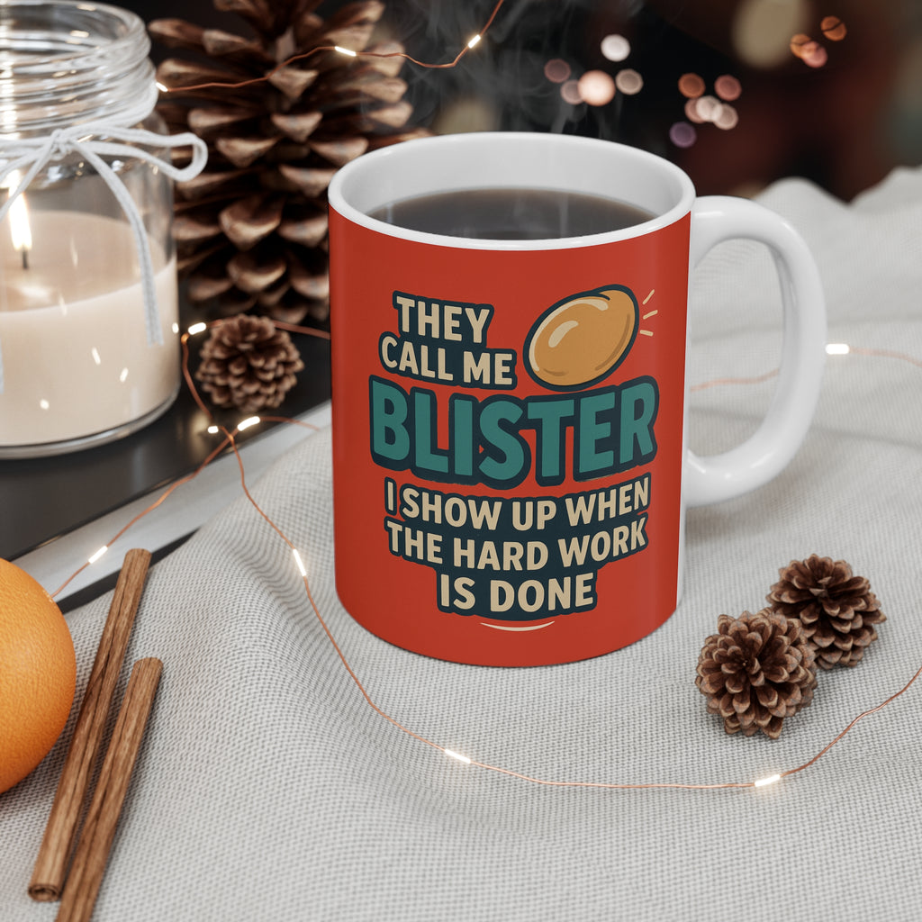 "They Call Me Blister – I Show Up When the Hard Work’s Done" Mug